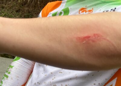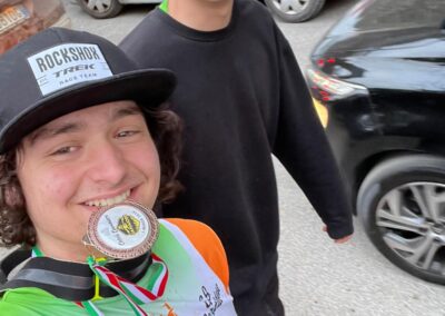 Un percorso molto impegnativo che ha messo in difficoltà anche gli atleti più esperti con in più un insidiosa infilrtrazione d’acqua imprevista che ha reso molto scivolosa la parte finale di una discesa sterrata.